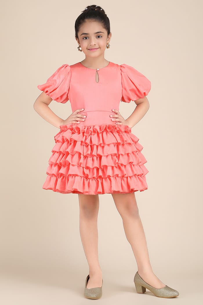 Peach Ruffle Waist Wide-Leg Korean Pants